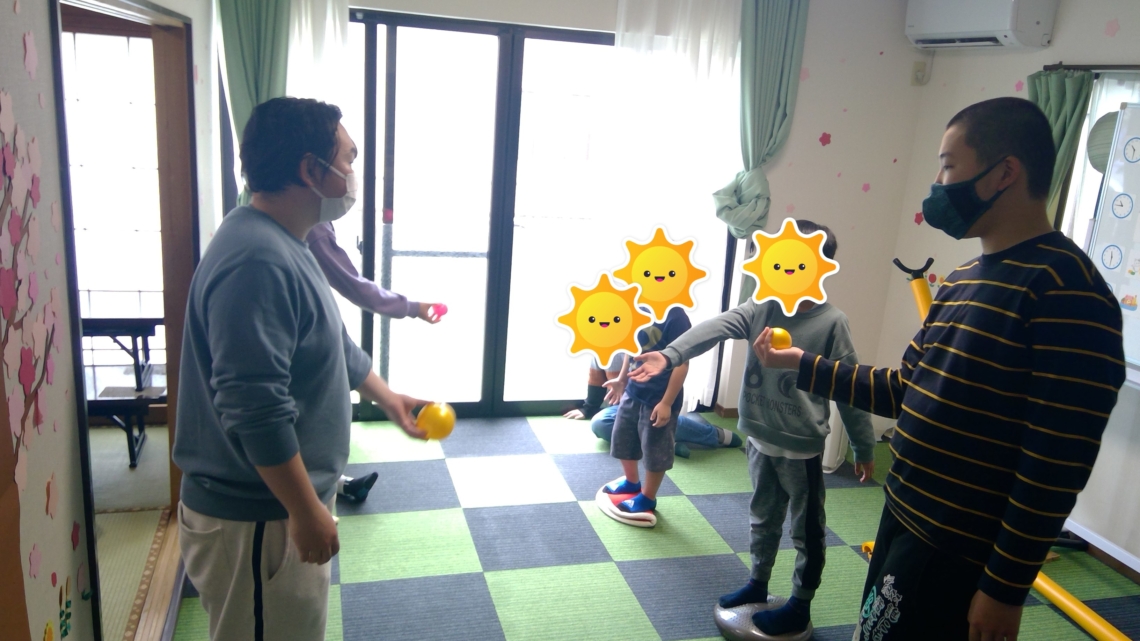 バランスをとる…ボールをキャッチする…投げる…沢山の要素が組み込まれていますが、遊びながら行っているため、お子様たちは楽しく行うことが出来ているようでした。