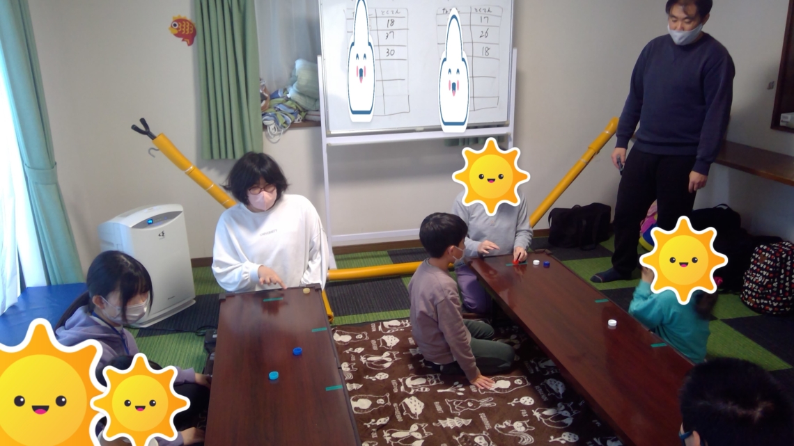 本日の集団療育はペットボトルキャップシュートです。