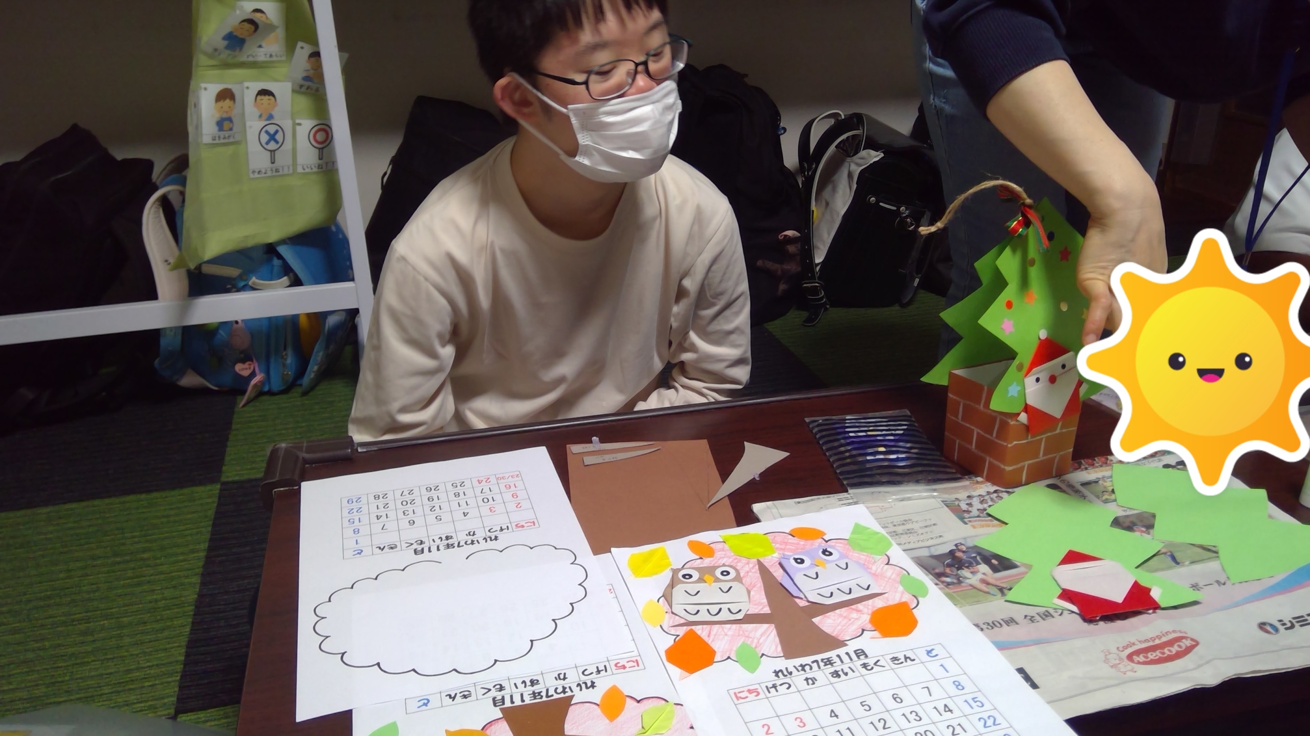 作業療育では、11月のカレンダー作りを行っています。