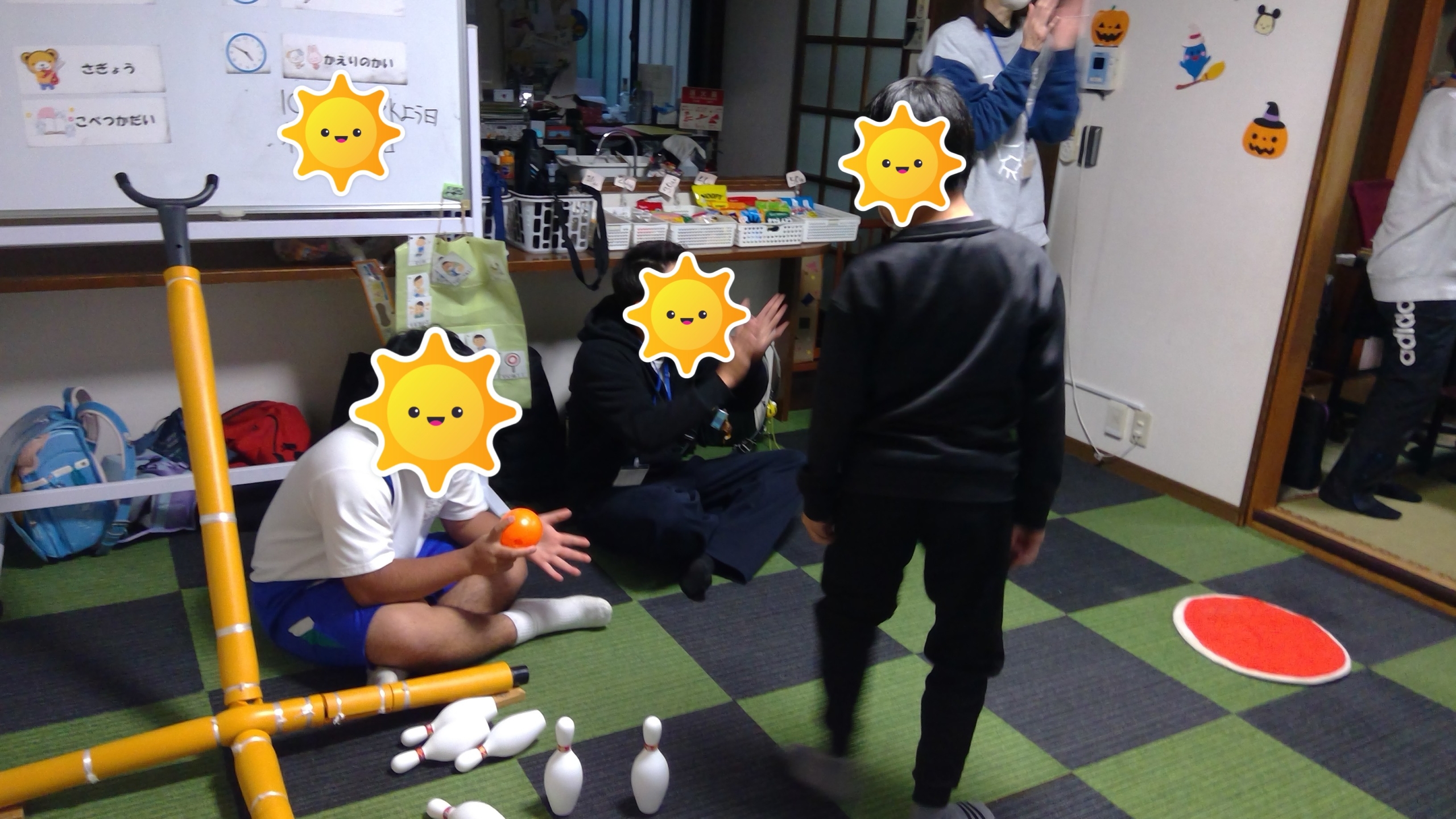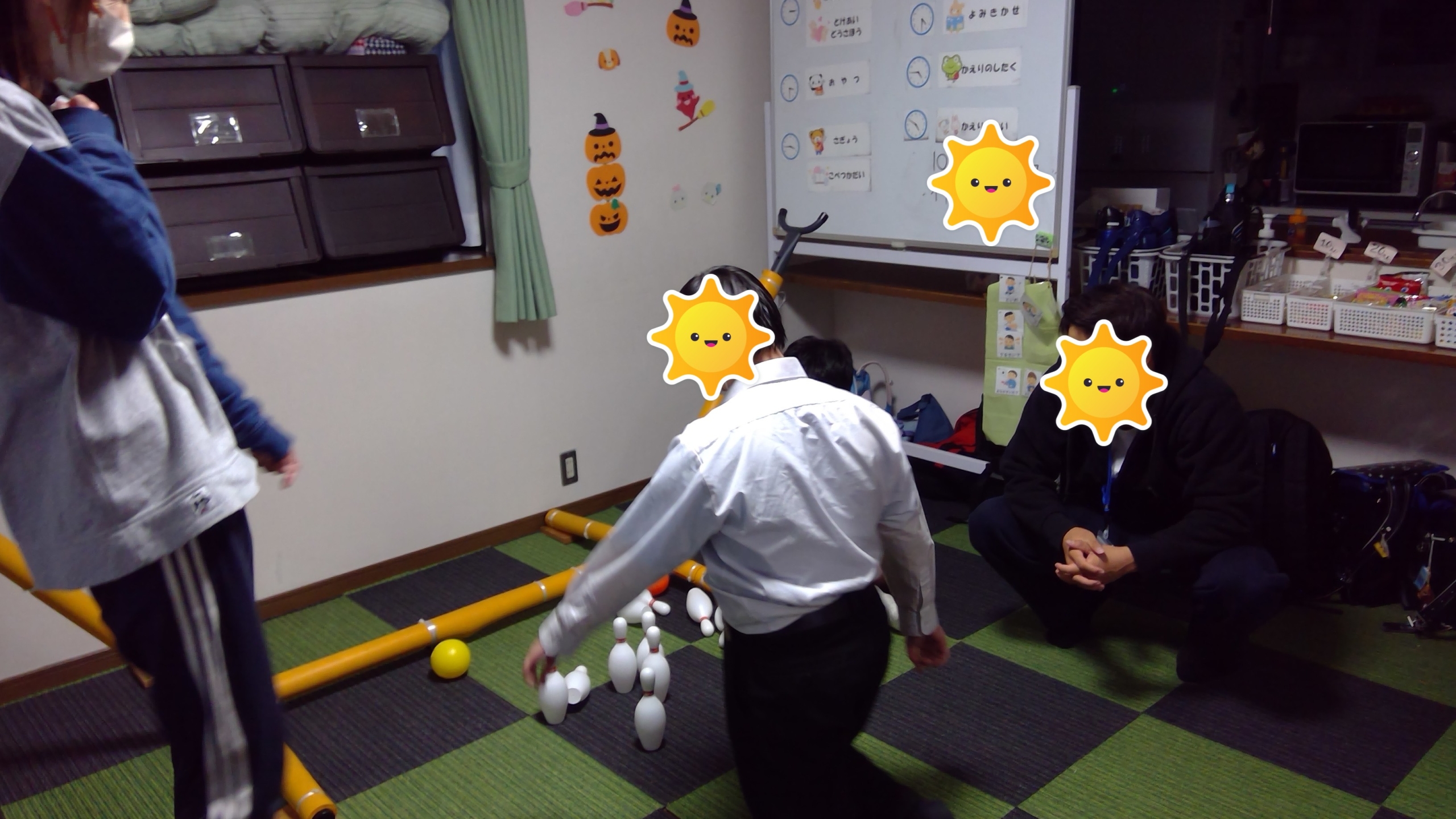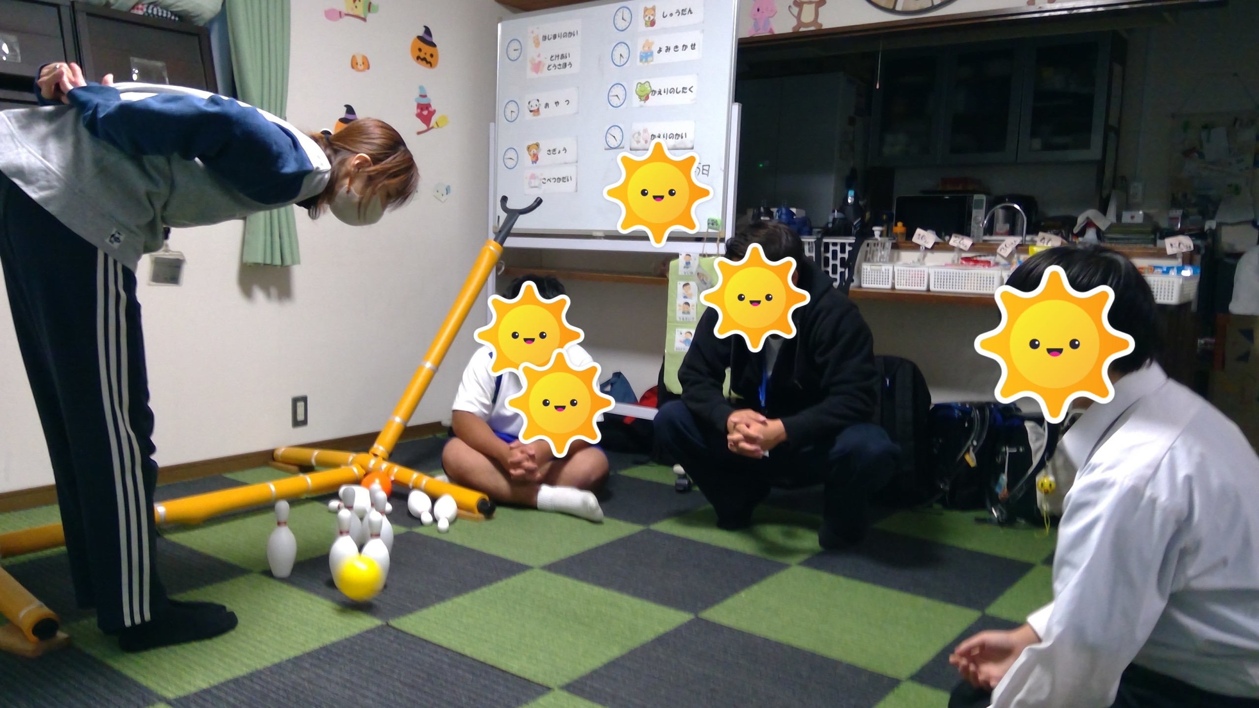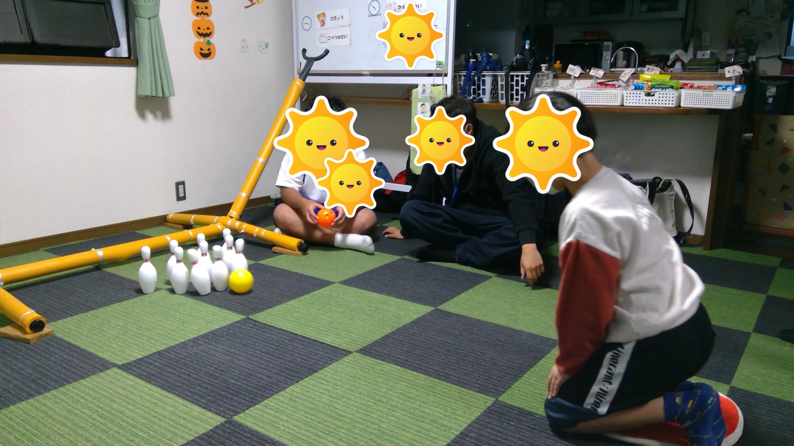 またお友達がやっている時は応援し、ピンが倒れると共に喜びあっていました。