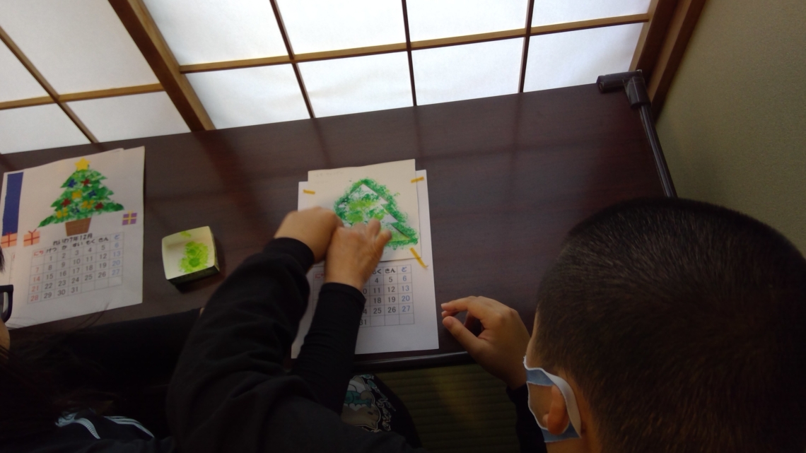 作業療育ではカレンダーやクリスマス制作を行っています。