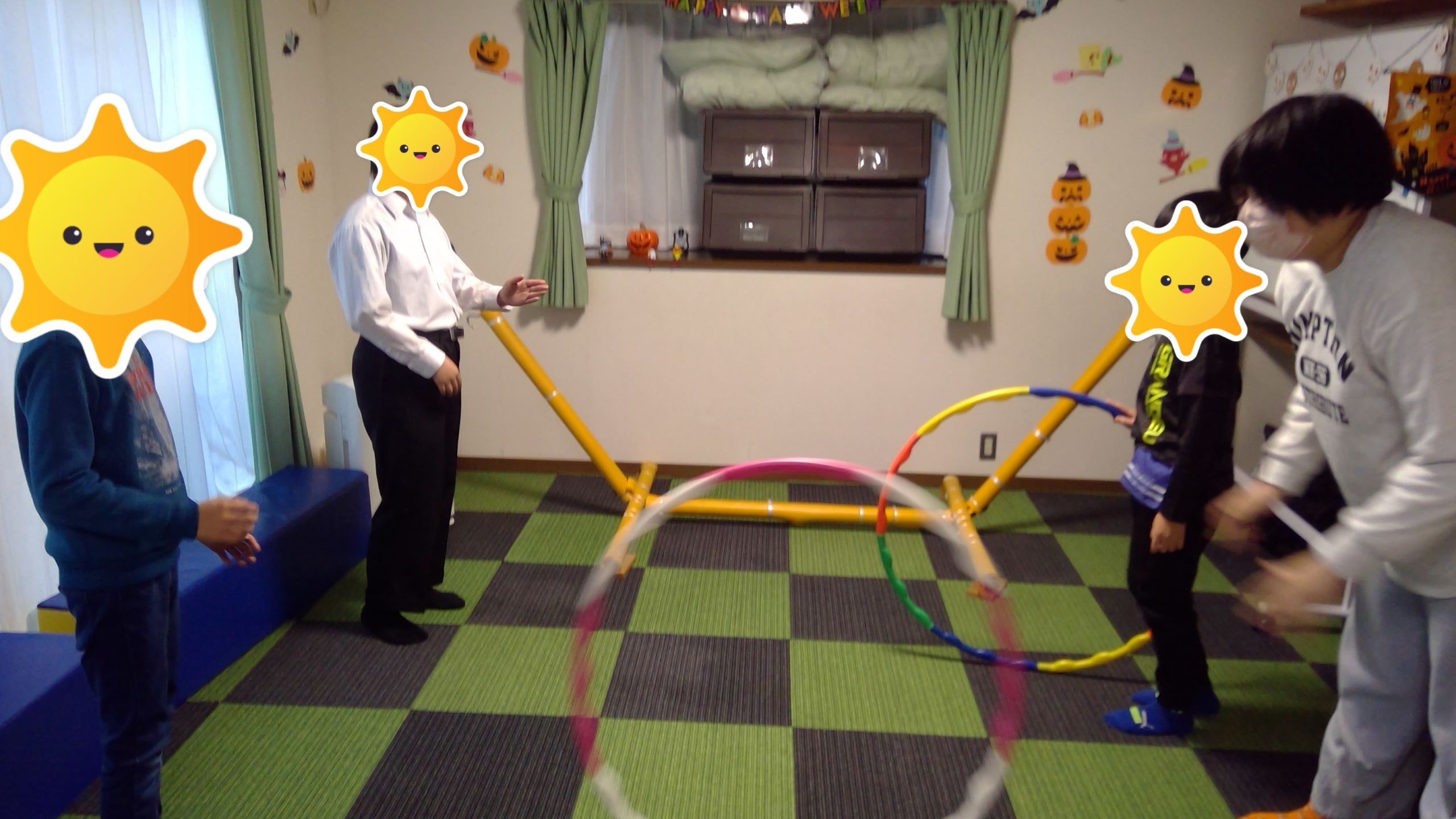 さて、本日の活動「フラフープ遊び」の様子をご紹介します。
