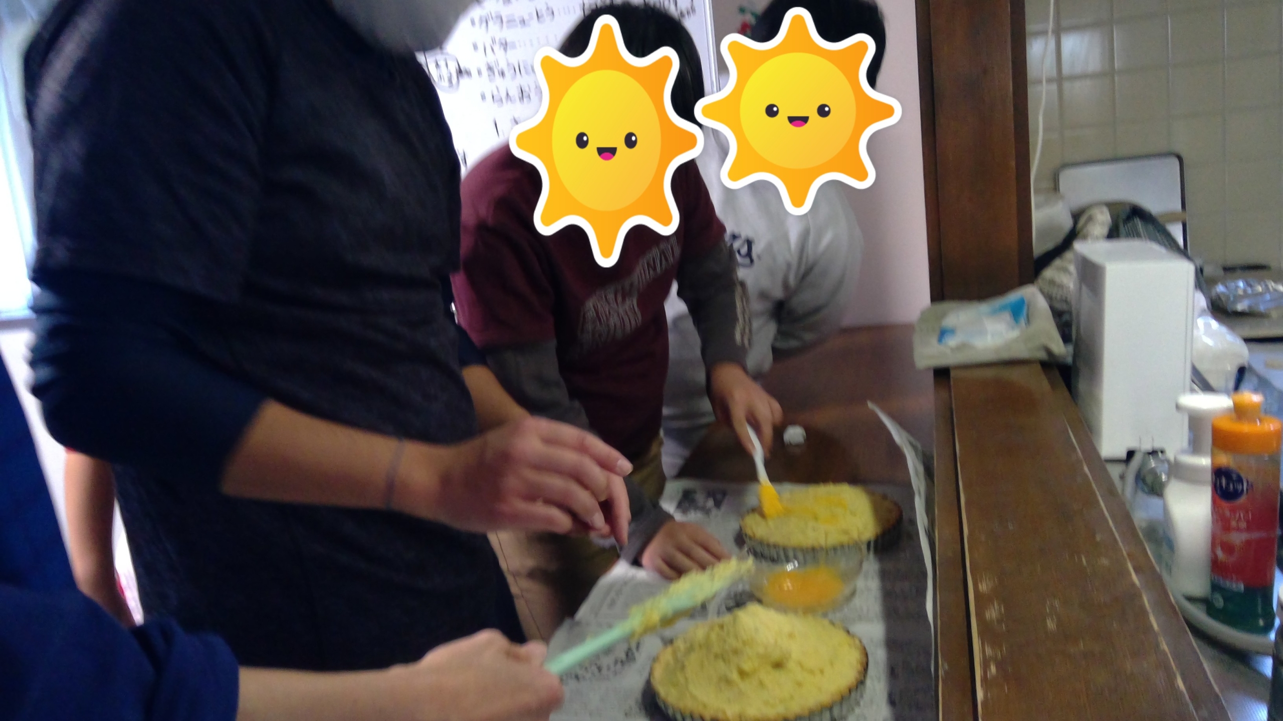 先月みんなで収穫したさつまいもを使ったスイートポテトタルトを作りました。