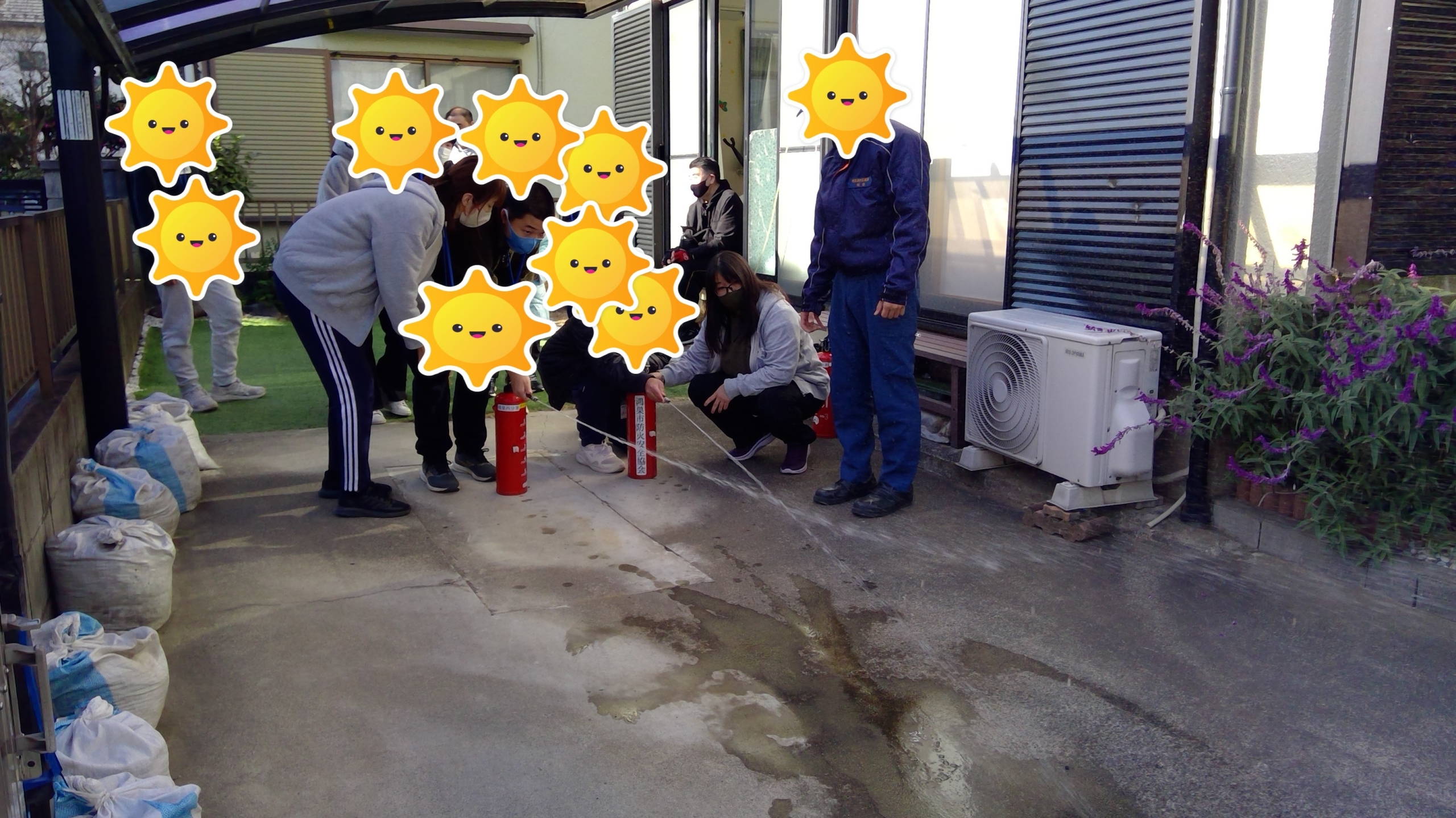 冬は火事が多いため、今回は火災を想定した避難の練習をおこなっています。
