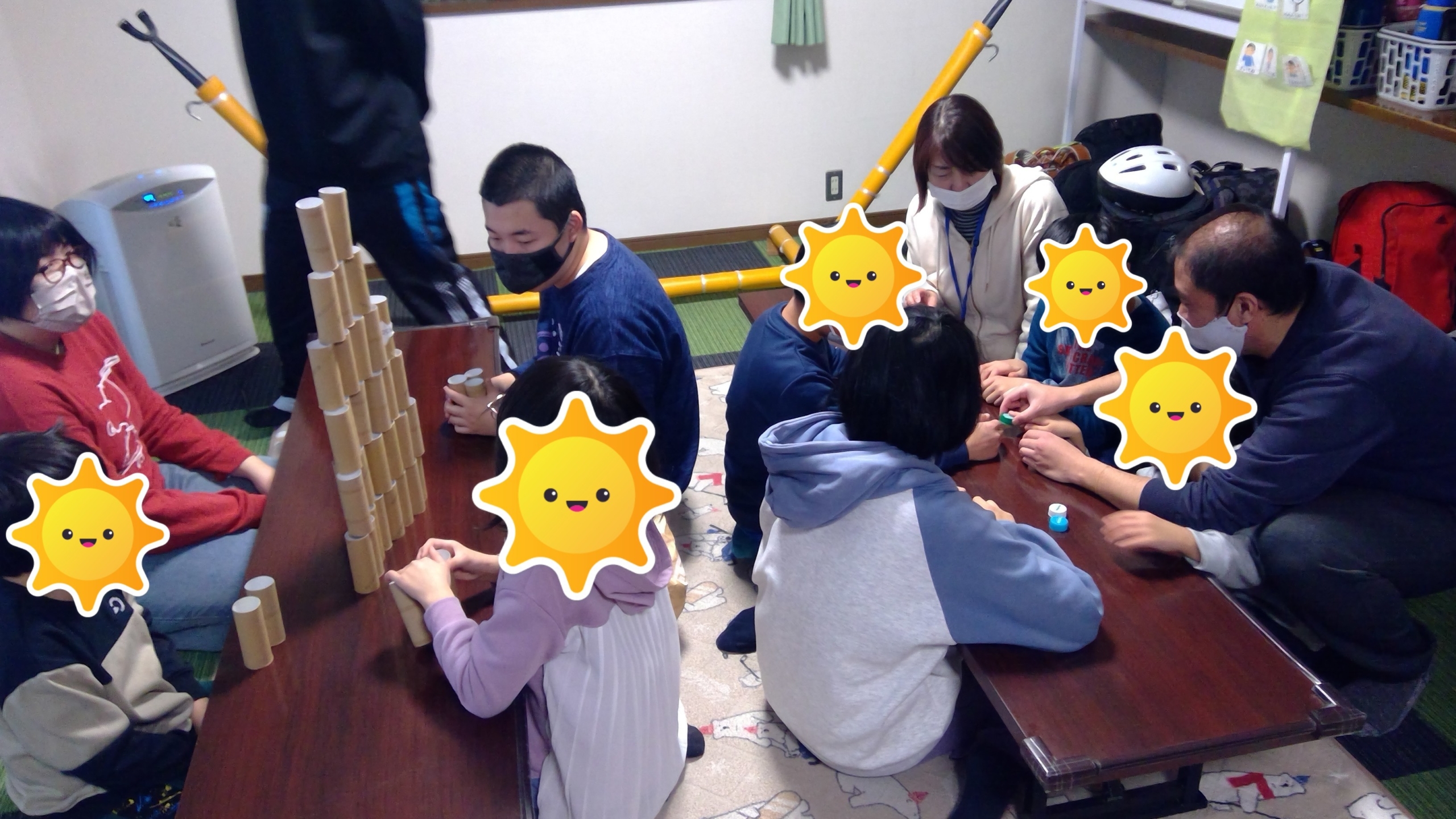 集団活動では、タワーづくりを行いました。順番にトイレットペーパーの芯を高く積んでいく時の表情は真剣そのもの!うまくいくと拍手がおこり、みんなで楽しく取り組みました。