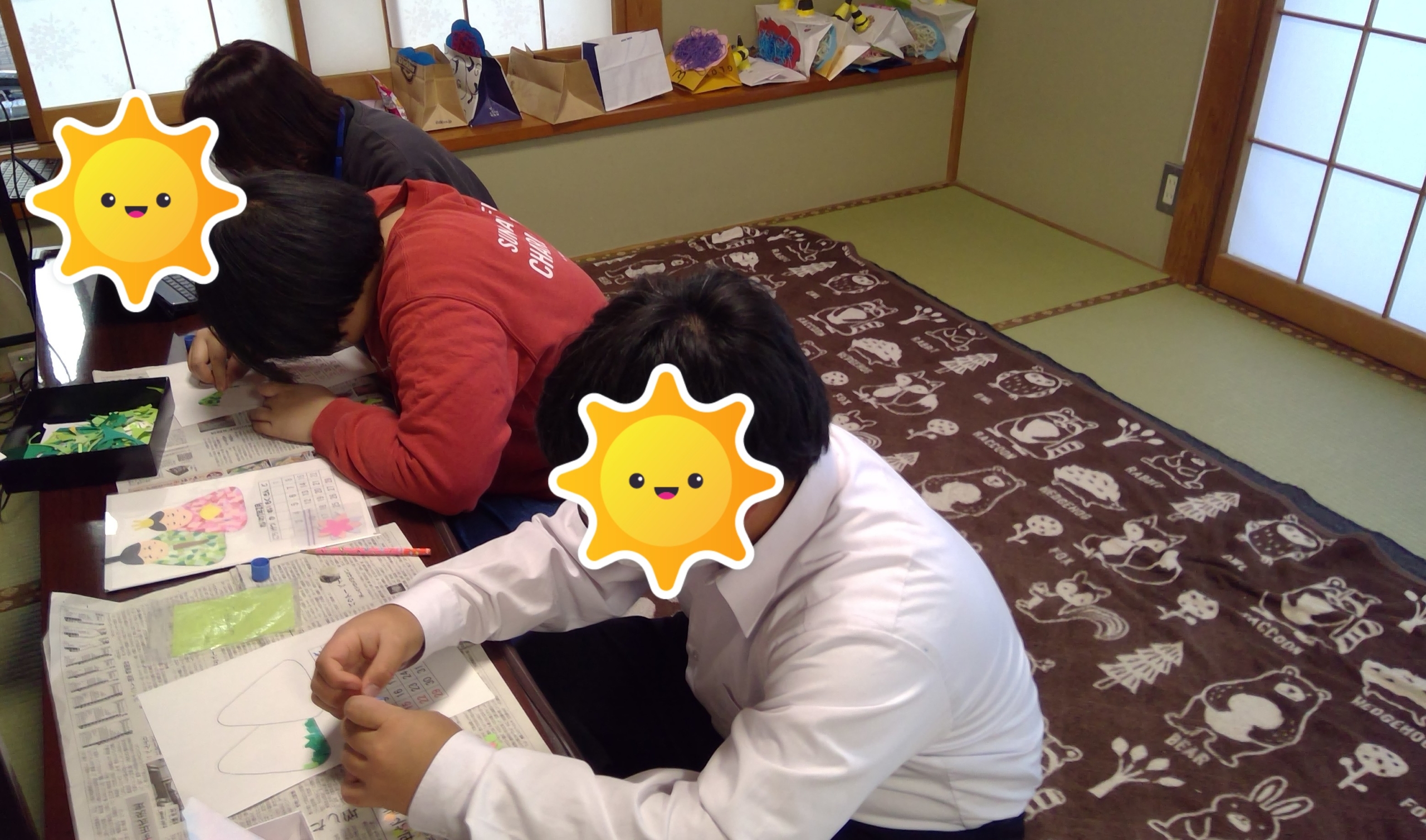 みんな画用紙とちぎって貼り付けを行っており、楽しそうに貼り付けを行っています。