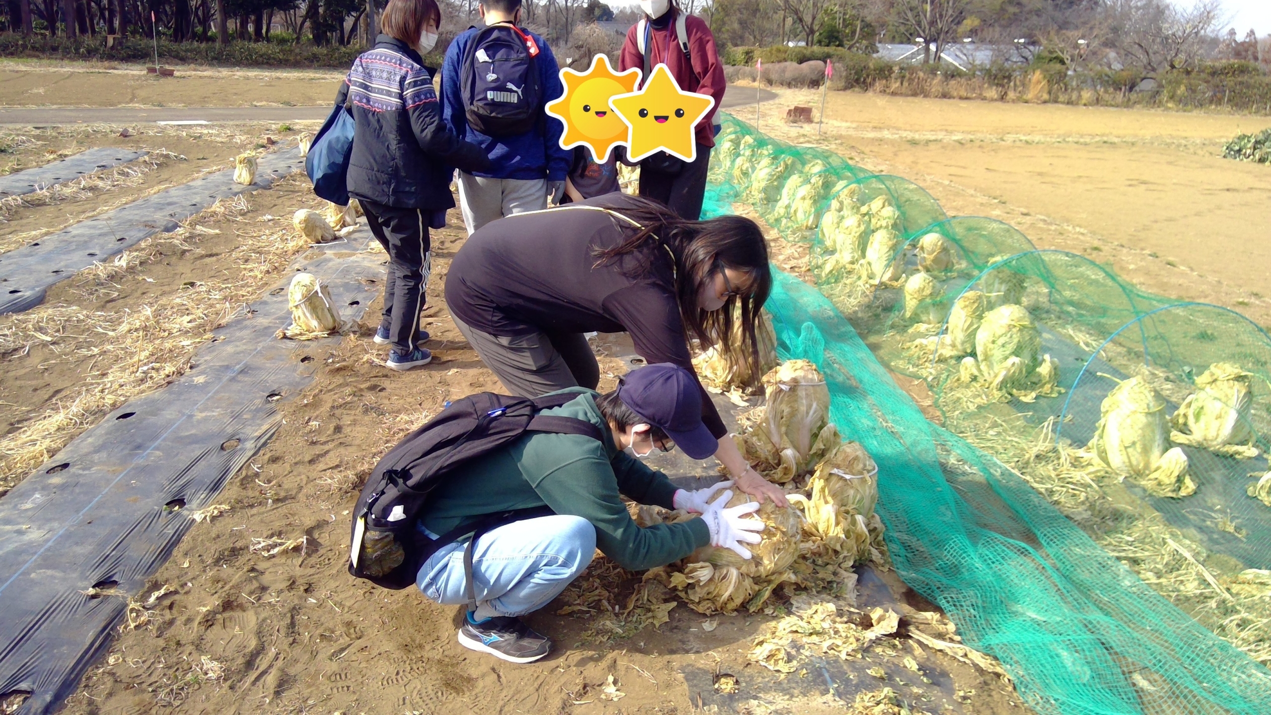 今の時期は白菜が育っているとのことで収穫体験を行っています。