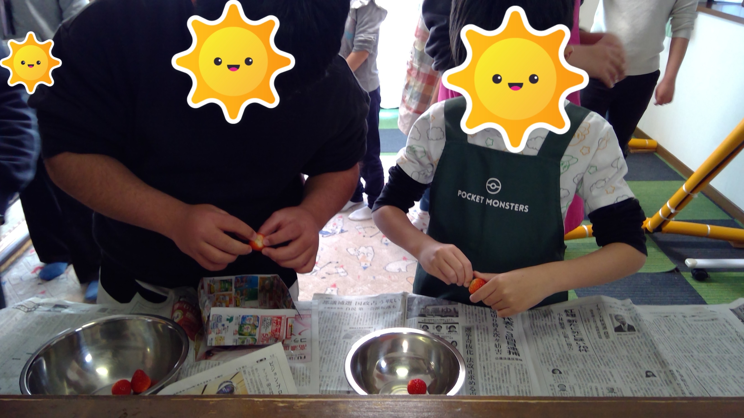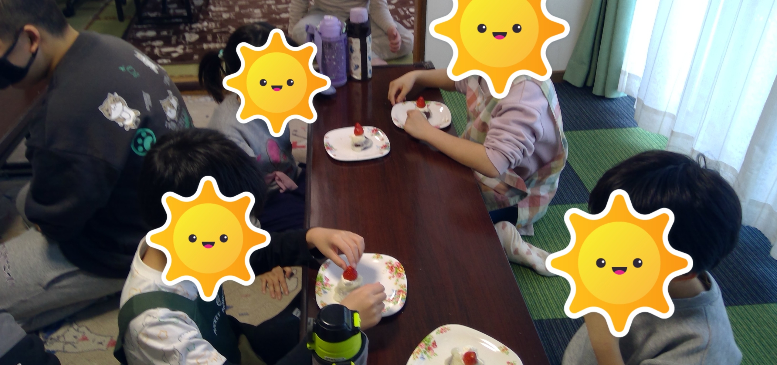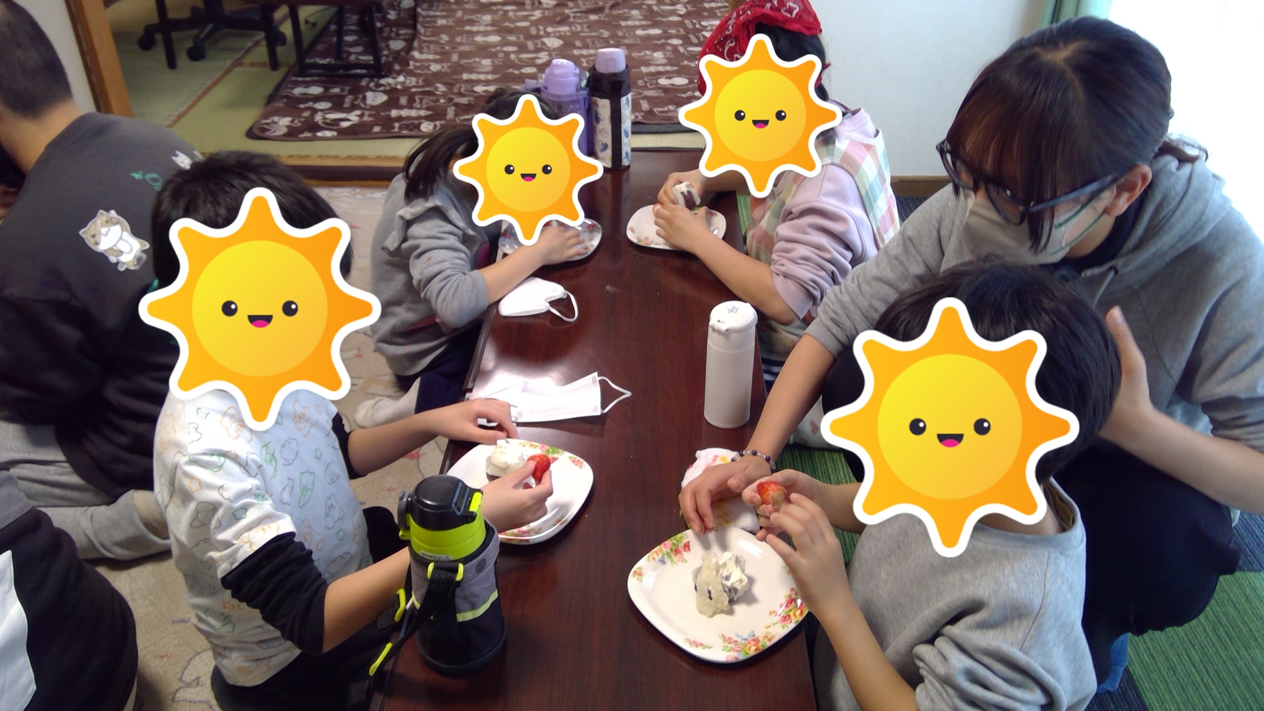 自分たちで飾りつけした大福をあっと言う間に食べていました。