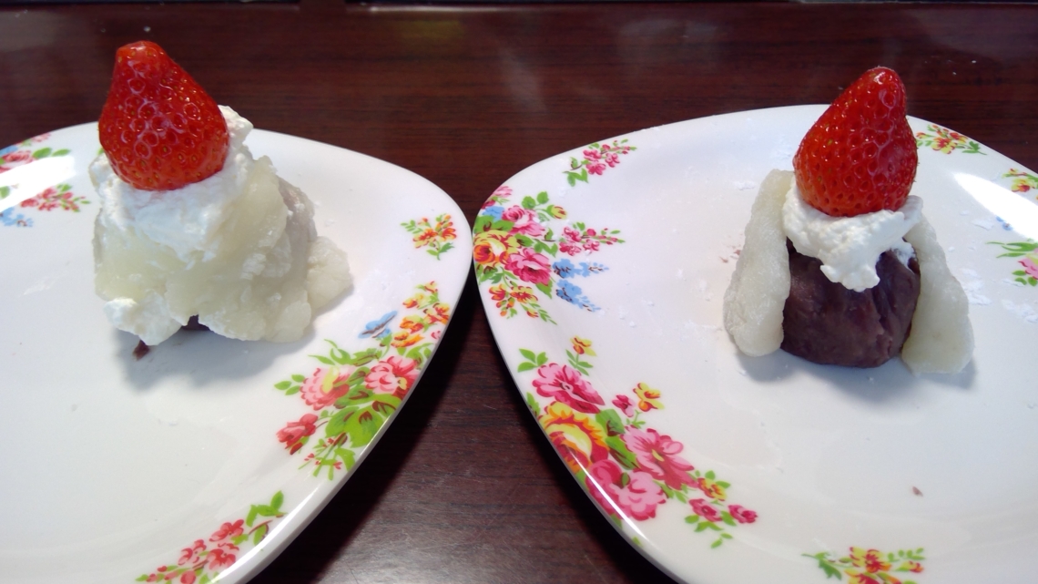イストワールではおやつ作りを行いました。メニューはひな祭りにちなんでいちご大福です。