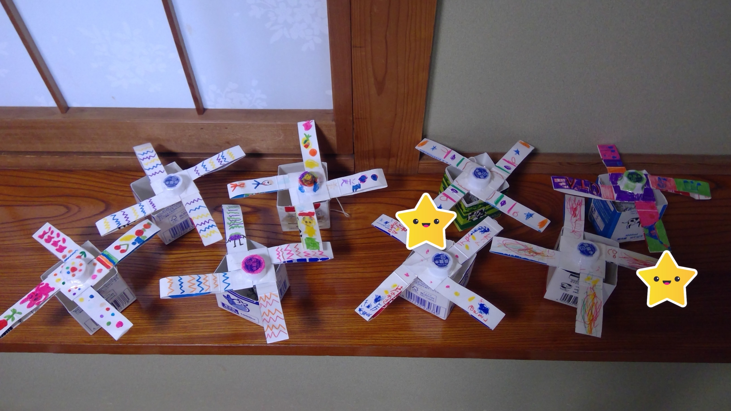 牛乳パックけん玉とこまを作りました。
