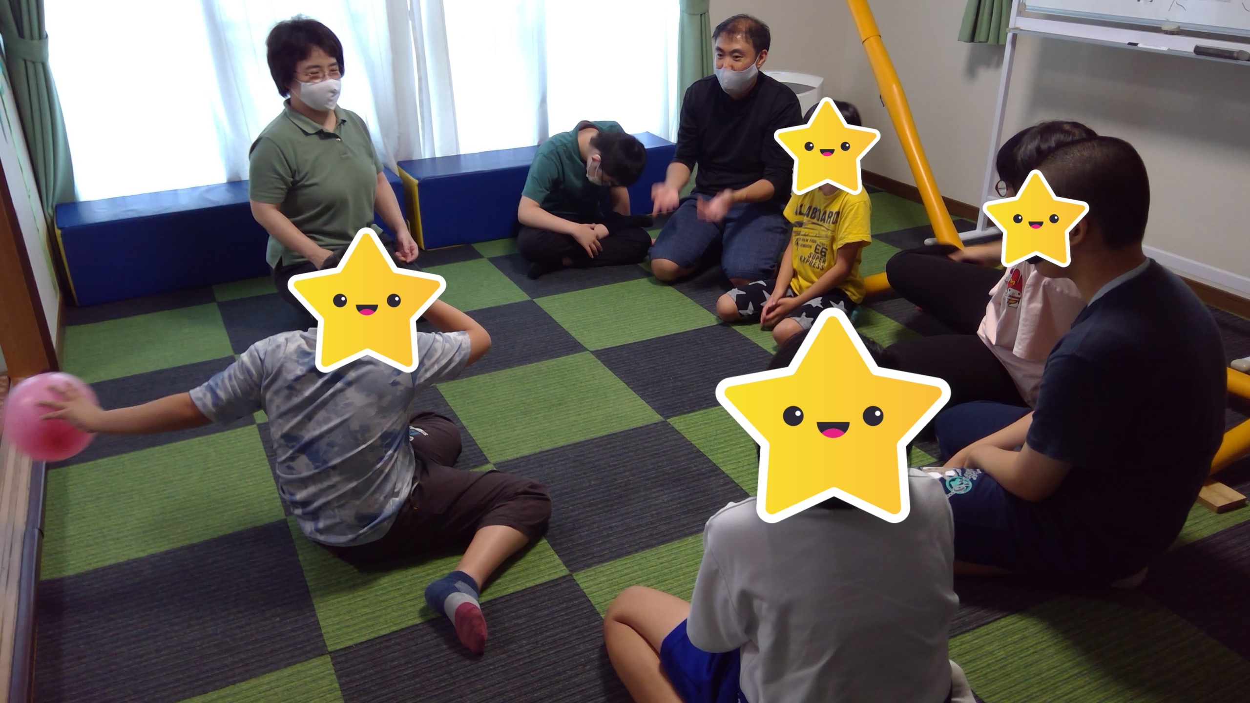 誰にパスするのか、瞬間できめて瞬間で名前をいいながら、その子のほうに風船をパスする、いうのは簡単ですが様々な要素がはいっているので、なかなか難しい。